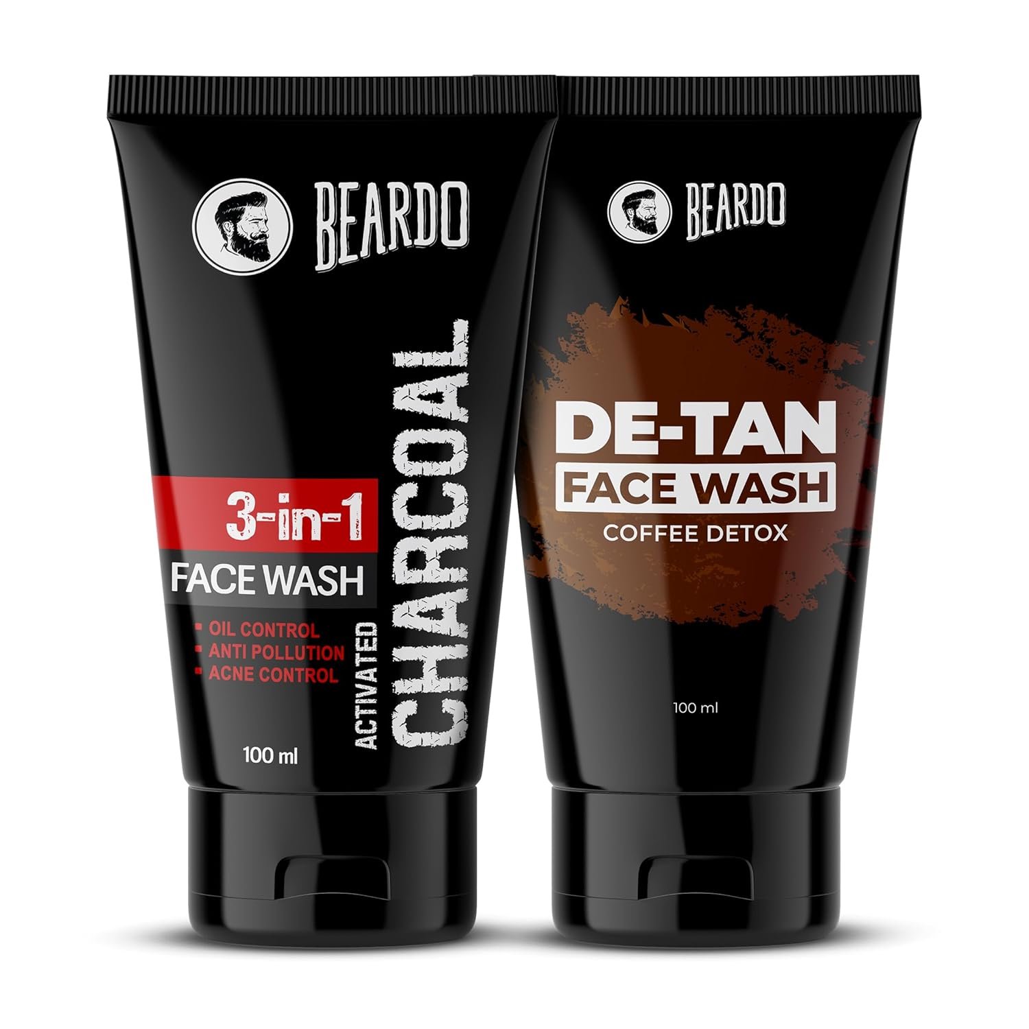 BEARDO Detan& Charcoal Face Wash For Men (100Ml X 2) | Facewash Combo That Removes Dirt & Reduces Tan | Goodness Of Activated CHARCOAL & Coffee Along With Aloe Vera Provides Moisturization