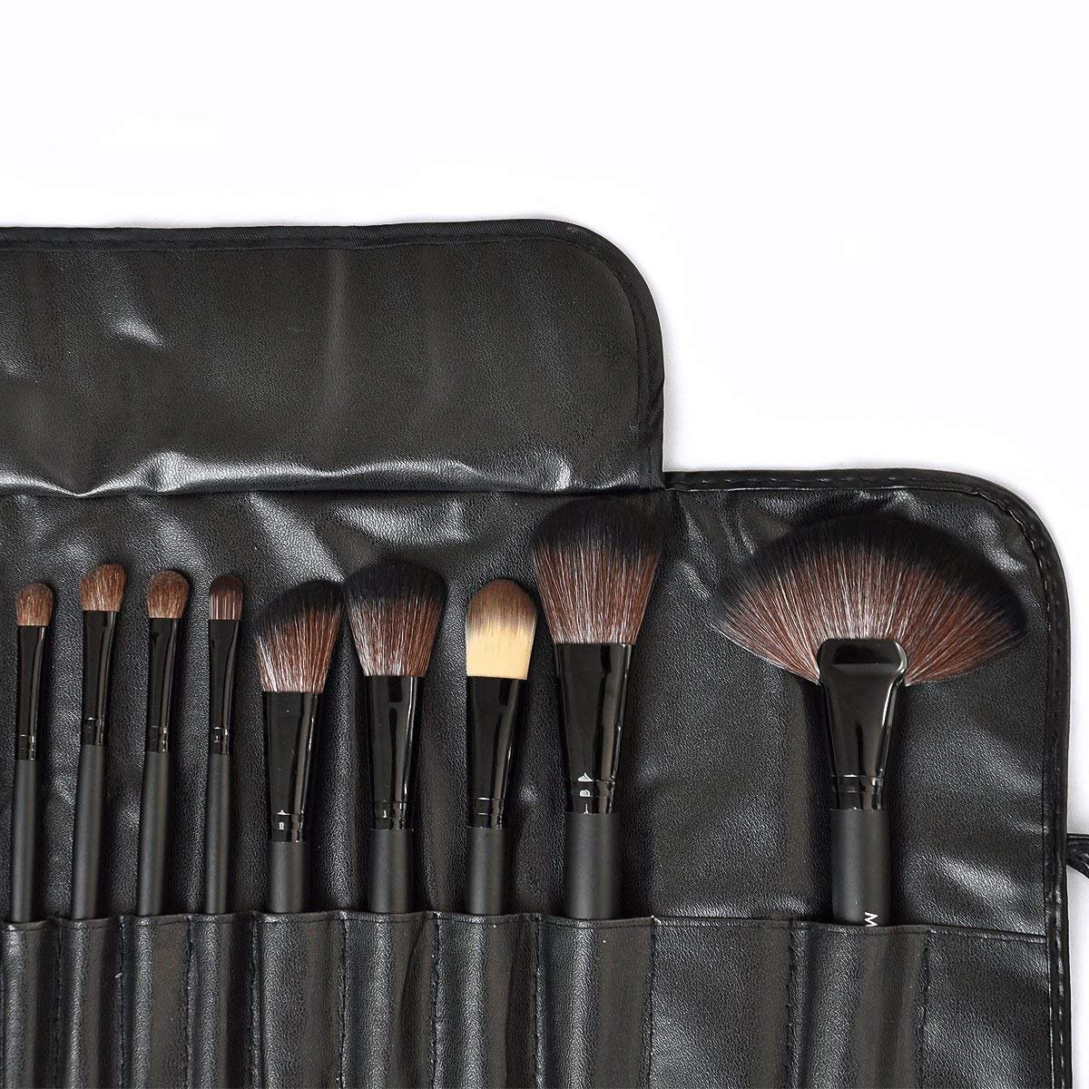 MACPLUS Fiber Bristle Makeup Brush Set with Black Leather Case- BLACK, 24 PiecesMACPLUS Fiber Bristle Makeup Brush Set with Black Leather Case- BLACK, 24 Pieces